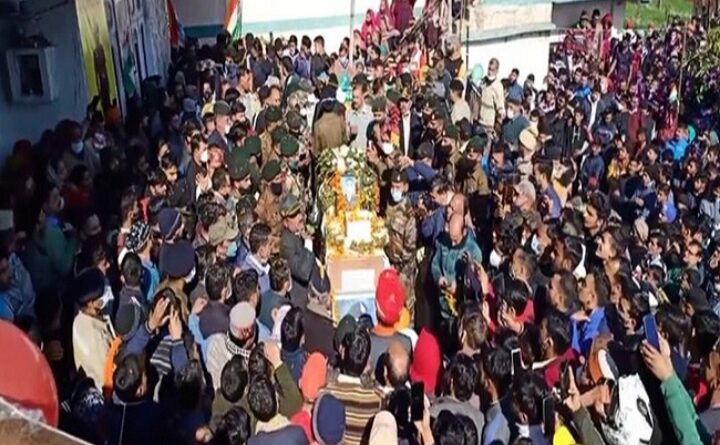 अरूणाचल प्रदेश में हिमस्खलन की चपेट में आने से शहीद हुए बिलासपुर जिले के सेऊ गांव के जवान अंकेश भारद्वाज की पार्थिव देह रविवार सुबह उनके पैतृक गांव पहुंची। जैसे ही पार्थिव देह घर पहुंची बैंड बाज के साथ उनका स्वागत किया गया। पिता ने भी बेटे के स्वागत के लिए पगड़ी पहन ली थी। पिता की इच्छा थी कि जब बेटे का शव घर पहुंचे तो उसका स्वागत बैंड बाजों के साथ किया जाए। अंकेश की पार्थिव देह के घर पहुंचने से पहले ही पूरे घर में राष्ट्रीय ध्वज लगा दिए गए थे और घर को किसी शादी समारेह की तरह सजाया गया था। बड़ी संख्या में लोग घर के बाहर एकत्र थे। घर से ही शहीद के शव को राजकीय सम्मान के साथ मुक्तिधाम ले जाया जाएगा। शहीद के सम्मान में युवाओं ने तरघेल से तिरंगा यात्रा और बाइक रैली भी निकाली। इस दौरान शहीद अंकेश के लिए नारे भी लगाए गए। इस दौरान खाद्य आपूर्ति मंत्री राजिंद्र गर्ग सहित कई चुनिदा प्रतिनिधि शहीद के घर पहुंच गए थे।एसडीएम राजीव ठाकुर, डीएसपी अनिल सहित अन्य अधिकारियों भी शहीद को अंतिम विदाई दी।