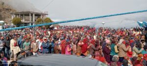 शिलाई खुमली में बारिश के बावजूद भी महिलाओं सहित सैकड़ों लोग साढ़े चार घंटे खुले मैदान में खड़े रहे, सरकार को चेताया,हमारा हक जल्द ही हमें दो नहीं तो होगा आंदोलन…