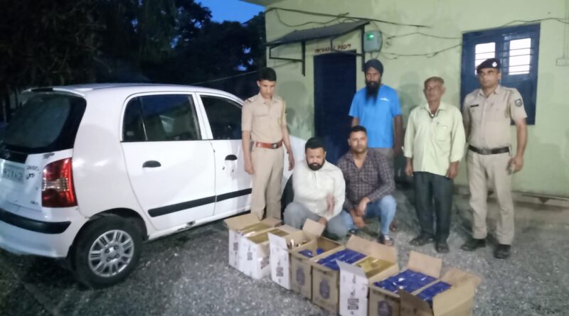 प्राप्त जानकारी के अनुसार पुलिस टीम को गुप्त सूचना मिली कि हरियाणा की तरफ से एक गाड़ी में पांवटा साहिब की तरफ अवैध शराब की खेप ला रहे हैं। सूचना मिलते ही पुलिस टीम ने बैहराल बैरियर पर नाका लगाया तभी सामने से एक कार एचआर 02X-6628 आई जिसमें प्रींस पुत्र अशोक कुमार निवासी गांव भूंगरनी डा0 शिवपुर तह0 पांवटा साहिब व गुरमीत सिंह पुत्र रघुवीर सिंह निवासी गांव बरोटी वाला डा0 शिवपुर तह0 पांवटा साहिब बैठे थे। पुलिस टीम ने गाड़ी रोककर तलाशी ली तलाशी के दौरान गाड़ी से 84 बोतल अंग्रेजी शराब की अवैध रूप से बरामद की है। पुलिस ने अवैध शराब के साथ दोनों आरोपियों को हिरासत में लेकर मामला दर्ज कर जांच शुरू कर दी है।